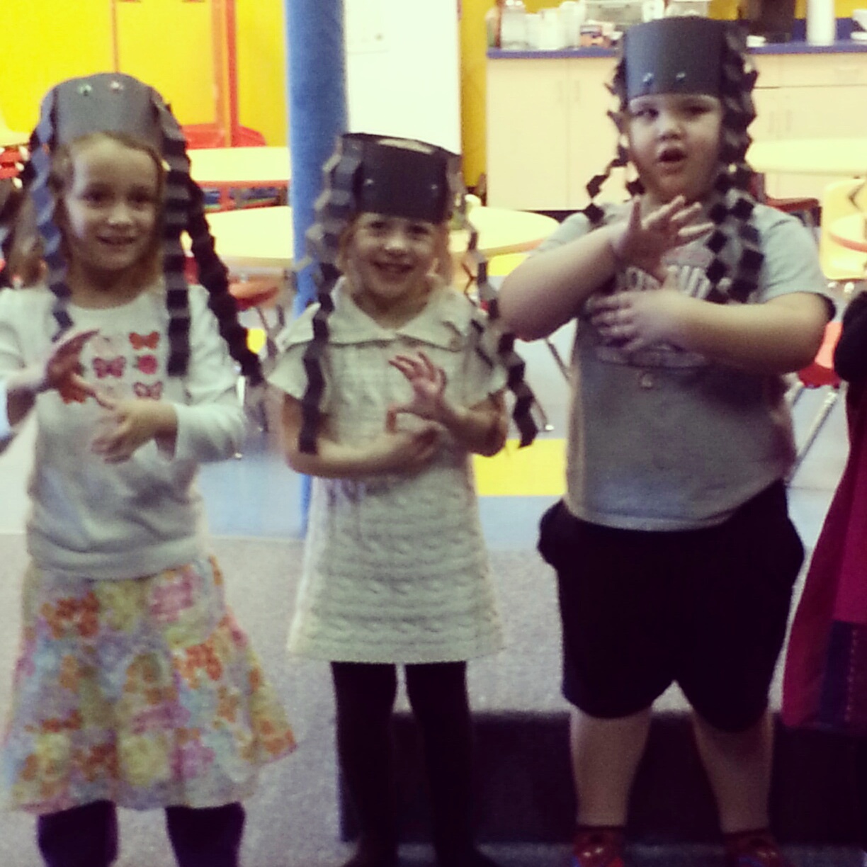 The kids made these spider hats and they had a ton of itsy bitsy spider art work in the theater.