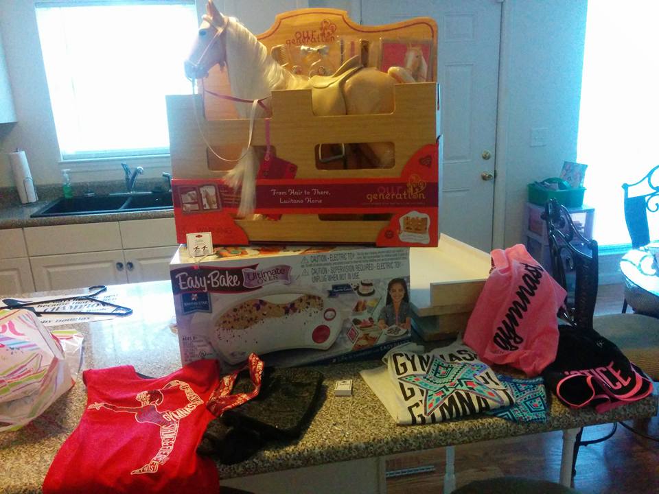 Her actual birthday we celebrated on May 30 (Memorial Day this year). We had so many family members show up and spoil my baby girl. She had a blast. She ate her favorite thing, a bean burrito smothered in cheese sauce, and she loved being the center of attention. She got many nice gifts and she was so happy. Afterward we went shopping. She picked Target where she got an Easy Bake Oven and Peaches (a knock off brand American Girl doll horse). Then we headed the Justice where she bought out everything that said Gymnast or Gymnastics on it and shopped til she dropped. It was fun just being with my little girl.